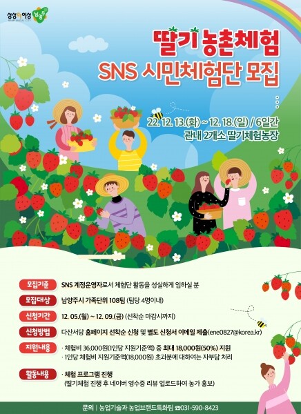 시 관계자는 “이번 시민체험단을 통해 남양주 딸기를 널리 알리고 다양한 판로를 확보함으로써 농가의 안정적인 소득원을 마련하는 데 도움이 되길 바란다 많은 시민들의 관심과 참여 부탁드린다”고 말했다.