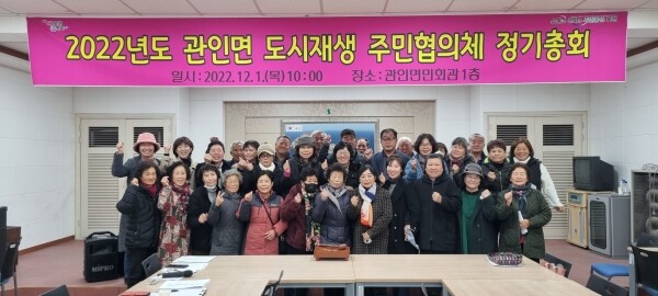 관인면 도시재생 주민협의체는 관인면 탄동리 1000번지 일원에서 2022년부터 2024년까지 3년간 진행되는 관인면 도시재생 인정사업의 중추적인 역할을 담당하고 있는 주민조직이다.