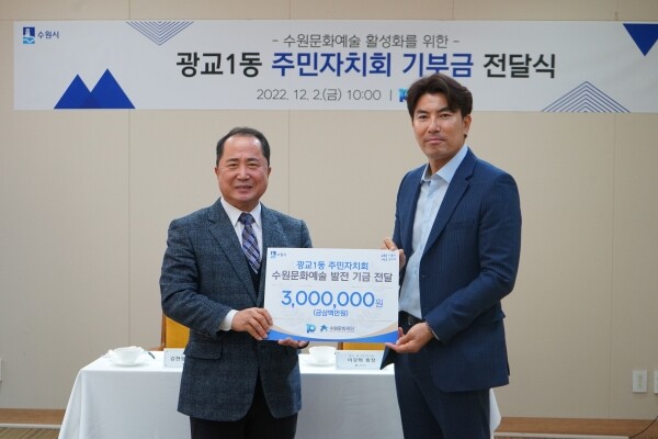 이에 김현광 수원문화재단 대표이사는 “수원문화재단 역시 광교1동 주민자치회와 함께 전달받은 기부금을 가치 있게 활용하기 위해 노력하겠다”고 답했다.