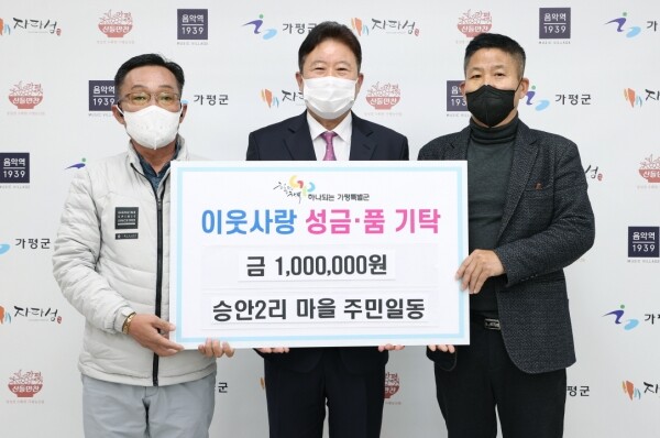 이에 서태원 가평군수는 “지역의 소외된 이웃을 위해 따스한 마음을 모아주신 승안2리 김용구 이장님을 비롯한 마을 주민 분들께 감사드린다”며 “주민 분들의 따뜻한 마음이 고스란히 전해져 온 마을이 따뜻한 겨울을 보낼 수 있을 것 같다”고 전했다.