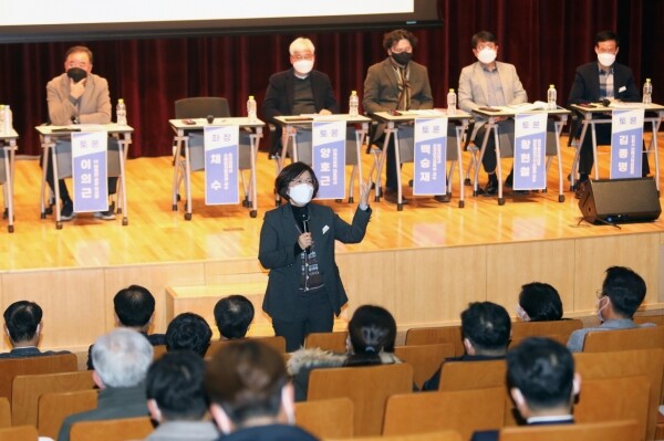 이어진 패널 토론에서는 채수 교수를 좌장으로 기업대표, 관내 대학 교수, 반도체 관련 기업 출신 임원 등 8명이 패널로 참여해 열띤 토론을 펼쳤다.
