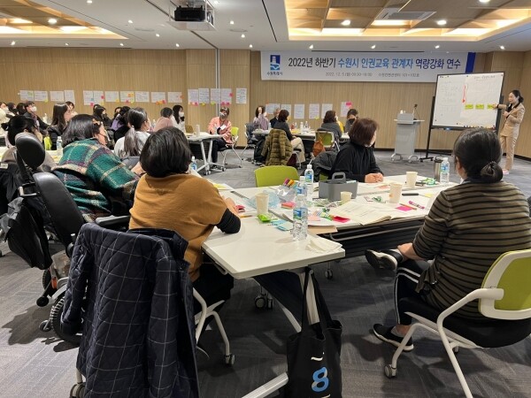 수원시 관계자는 “최근 인권 이슈인 ‘돌봄과 인권’ 전문가 특강이 인권교육 강사들이 인권교육의 주제를 확장하는 데 도움이 됐길 바란다”며 “강사들이 인권교육 참가자의 참여와 소통을 촉진하는 인권교육 방법론을 적용할 수 있도록 역량개발 워크숍을 마련했다”고 말했다.