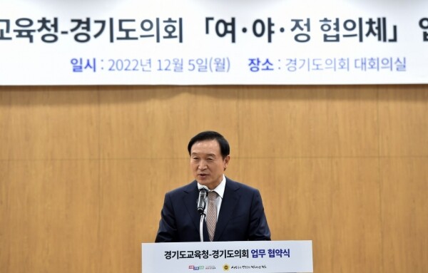 협약식에는 임태희 교육감, 경기도의회 염종현 의장, 국민의힘 곽미숙 대표의원, 더불어민주당 남종섭 대표의원, 도교육청 관계자 등 30여명이 참석했다.