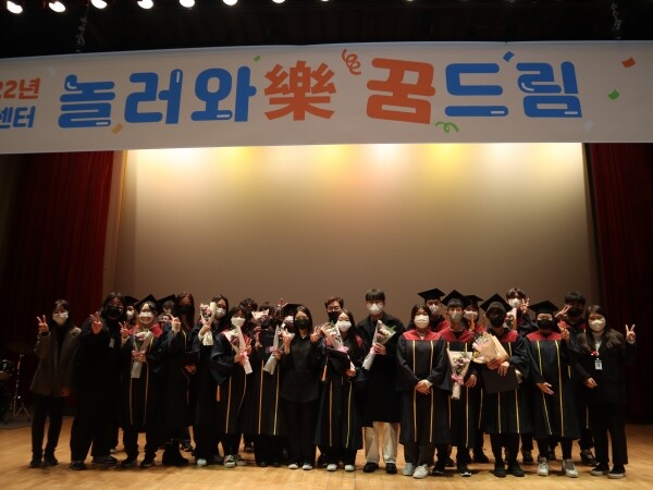 학교 밖 청소년 수료식 ‘놀러와락 꿈드림’ 1부는 관내 대안교육기관 소속 청소년의 축하공연을 시작으로 학교 밖 청소년 지원에 기여한 분들에 대한 감사패 전달, 수료증 수여, 운영성과 보고 및 학교 밖 청소년들의 공연과 소감발표 등으로 진행됐으며 2부에서는 학교 밖 청소년들이 한 해 동안 자기계발을 위해 노력한 원예와 도예 작품 전시 및 제과제빵과 바리스타 과정의 결과물을 공유하는 뜻깊은 시간이 됐다.
