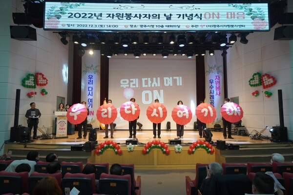 이번 자원봉사자의 날 기념식‘ON-마음’은 따뜻한 마음의 온도로 마음의 빛을 키고 온마음을 다해 자원봉사를 실천하는 우리라는 주제로 자원봉사자들의 노고를 격려하고 화합을 다지는 시간을 가졌으며 유공표창 전달식과 자원봉사 우수사례공유회, 5,000시간 봉사자를 대상으로 인증서와 배지를 전달했다.