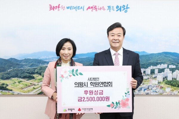 성금은 지난달 13일 의왕시 학원연합회가 운영한 일일찻집 수익금으로 마련했으며 이날 전달식은 김성제 의왕시장, 사단법인 의왕시 학원연합회 이경숙 회장과 윤완규 명예회장 등 회원 8명이 참석한 가운데 진행됐다.