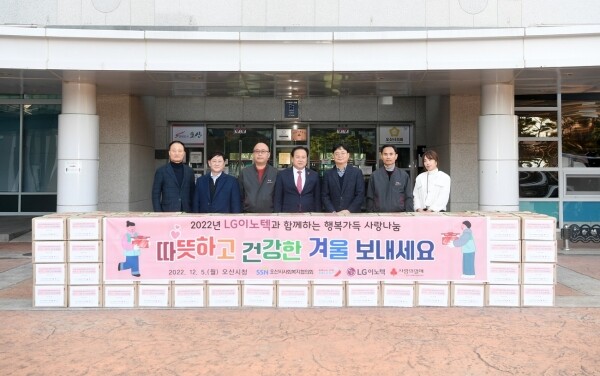 한편 LG이노텍은 2015년부터 현재까지 추석맞이 선물세트 및 김장김치 기탁, 저소득 취약계층을 위한 백미 300포 기탁 등 관내 이웃들을 위한 지속적인 후원을 실천해왔을 뿐만 아니라 오산시와 민관협력을 추진함으로써 지역사회복지에 공헌하고 있다.
