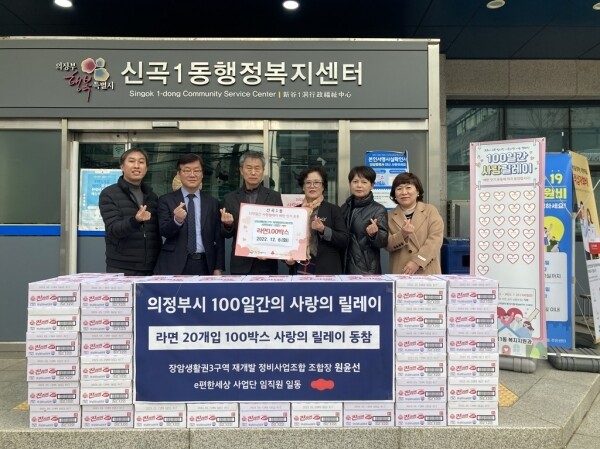 김지효 신곡1동 복지지원과장은 “어려운 시기에 뜻깊은 나눔과 이웃사랑을 실천해 주신 장암생활권 3구역 주택재개발정비사업조합 및 e편한세상사업단 관계자분들에게 깊은 감사의 말씀을 드린다”며 “이번 나눔으로 보여주신 따뜻한 마음이 후원물품과 함께 잘 전달되도록 하겠다”고 말했다.