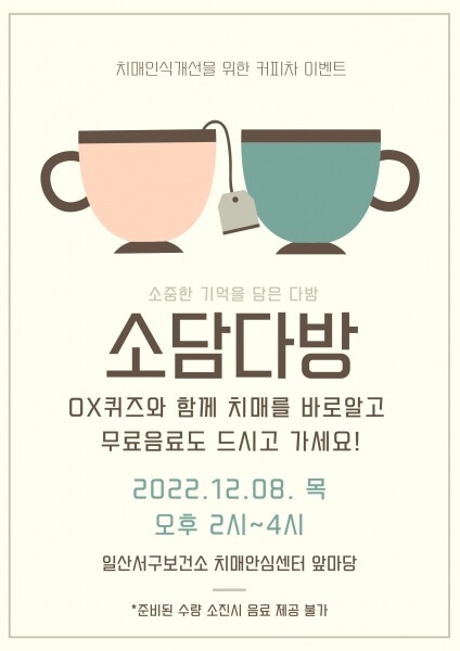 OX퀴즈, 판넬 전시, 치매조기검진 및 상담, 거리 캠페인 등 다양한 프로그램과 무료 음료가 제공된다.