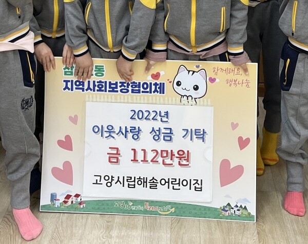 양재관 삼송2동장은 “나눔을 실천하는 고양시립해솔어린이집 원아와 직원들의 큰 정성에 우리 지역사회가 따뜻해지는 기분이 든다 깊은 감사를 드리며 기부해 주신 성금은 소중히 사용하겠다”고 말했다.