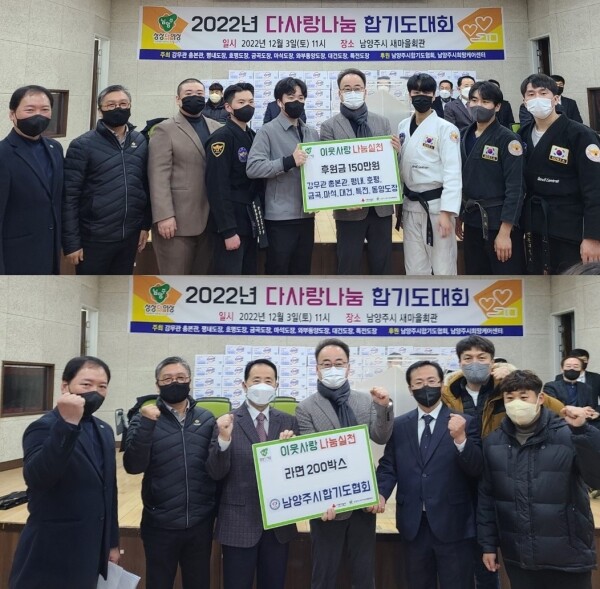 한편 ‘2022년 다사랑나눔 합기도대회’의 후원금과 후원 물품은 남부희망케어센터를 통해 지역 내 취약계층 이웃들을 위해 사용될 예정이다.