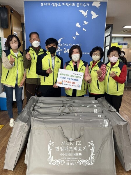 이날 전달식에는 교문1동 지역사회보장협의체 구경자 위원장과 위원 4명, 교문1동장이 참석했으며 전기장판과 뽁뽁이는 저소득 독거노인, 중증장애인 등 총 50가구에 설치·지원될 예정이다.