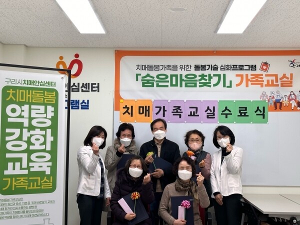 한편 구리시 치매안심센터는 치매로 진단받은 치매환자의 가족 및 보호자를 대상으로 치매 초기의 진단 시점부터 필요한 다양한 정보와 지원 서비스를 제공하기 위해 ‘치매를 맞이하는 첫걸음’ 기초과정, 치매돌봄 역량강화를 위한 ‘헤아림’ 기본과정 프로그램 등 가족 프로그램을 정기적으로 운영하고 있다.