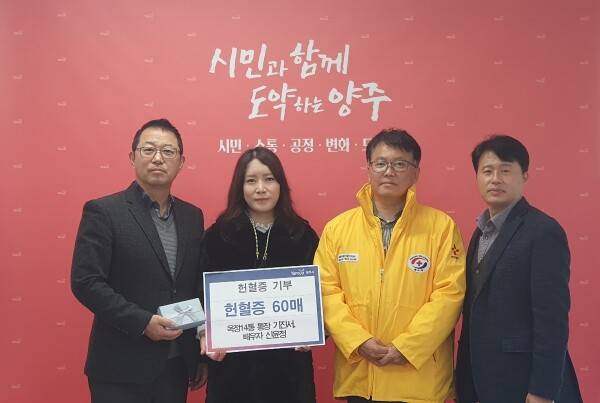 이날 기부식에는 이창열 동장, 최훈락 회천4동 적십자봉사회장, 기진서 통장, 배우자 신윤정 씨 등이 참석했다.