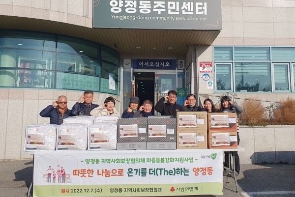 조성연 양정동장은“날이 더 추워지기 전에 취약계층을 찾아가 따뜻한 선물과 안부를 전달해주시는 지역사회보장협의체에 감사드리며 앞으로도 지역사회의 지속적인 관심과 참여를 부탁드린다”고 전했다.