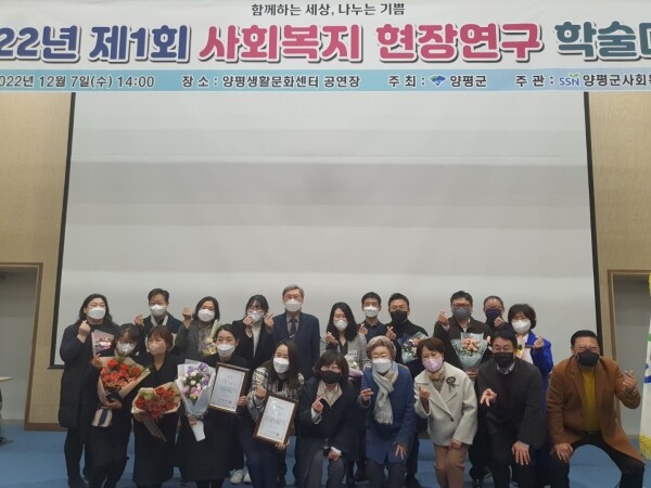 이날 행사는 김영태 양평군 부군수를 비롯해 사회복지시설 기관·단체장과 사회복지종사자 100여명이 참석한 가운데 단국대학교 한경근 교수의 ‘현장연구 작성법’이라는 주제의 강연과 평택대학교 이종복 명예교수의 심사를 통해 금상 1팀, 최우수상 3팀, 우수상 5팀에 대한 시상식을 진행했다.