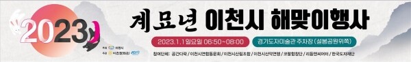 행사는 해가 뜨기 전인 6시 50분부터 시작해 리듬앤씨어터의 웅장한 대북공연으로 문을 열고 이천시민을 대표해 2023년 이천시 사자성어를 작성하는 서예퍼포먼스가 이어진다.