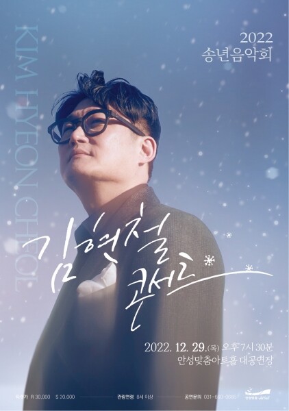 특유의 감미로운 목소리로 김현철 표 히트곡을 아낌없이 들려줄 이번 2022 송년음악회의 티켓가격은 R석 3만원, S석 2만원이며 안성 시민은 15% 할인 혜택을 받을 수 있다.