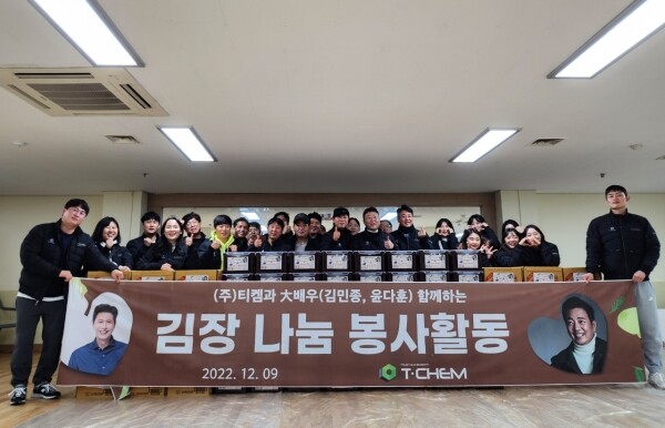 ㈜티켐은 무기화학 비료 원료를 납품하는 화학기업으로 이번 김장 봉사를 위해 30여명의 직원들이 직접 참여해 김치를 담갔다.