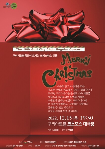백경현 구리시장은 “구리시립합창단이 준비한 크리스마스 캐럴을 통해 시립합창단과 정기연주회에 방문해주신 구리시민들이 하나로 어우러지는 잊지 못할 추억을 만들었으면 한다”고 전했다.
