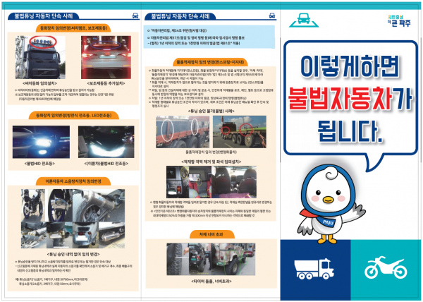 리플릿에는 ‘불법자동차 단속 사례’를 요약한 내용이 담겨있다.