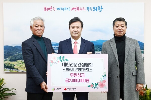 이날 전달식은 대한전문건설협회 의왕시 운영위원회 성완모 회장과 이원재 총무가 참석한 가운데 진행됐다.