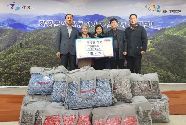 지병록 청평면장은 “귀한 생필품을 나눠주신 청평 10리 마을회 분들에게 감사드린다 정성과 사랑이 담긴 이불을 지역의 어려운 이웃에게 잘 전달하겠다”고 말했다.