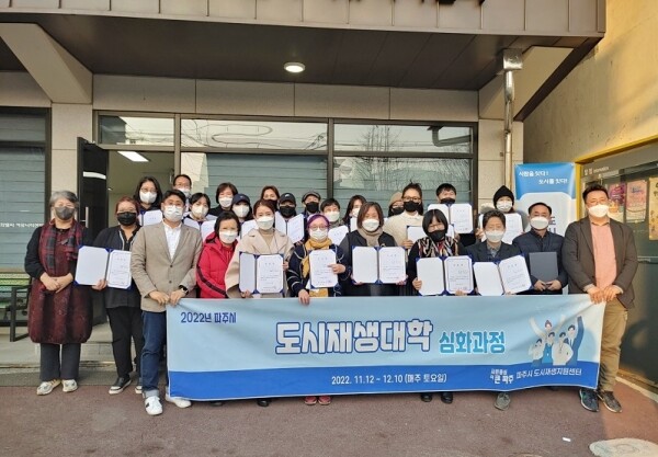 장희진 도시재생지원센터장은 “2023년에 진행될 다양한 주민공모사업의 취지와 목적을 잘 파악해서 지원하는 것이 중요하다”며 “이번 도시재생대학을 수료한 여러분에게 많은 도움이 되길 기대한다”고 말했다.