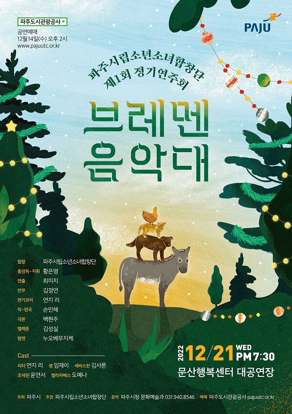 공연은 무료로 진행되며 파주 도시 관광공사 홈페이지를 통해 14일 오후 2시부터 선착순으로 예매할 수 있다.