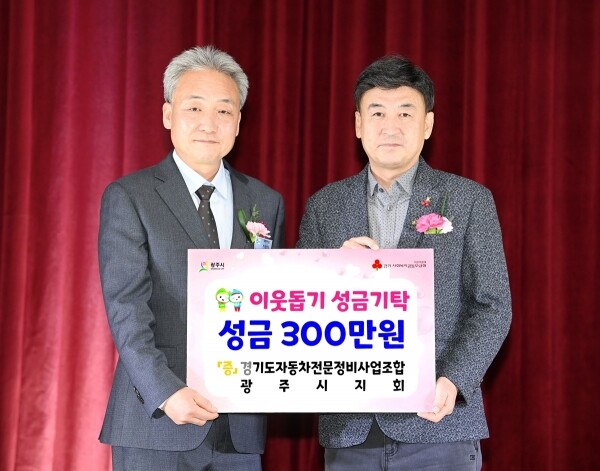 방 시장은 “매년 어려운 경제상황에서도 지속적으로 소외된 이웃을 위해 성금을 기탁해 주고 있는 경기도자동차전문정비사업조합 광주시지회에 감사드린다”며 “기탁받은 성금은 어려운 이웃을 위해 소중히 쓰겠다”고 말했다.