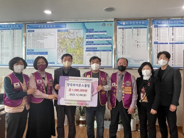 이기일 양촌읍장은 “양곡라이온스 회원들의 따뜻한 마음에 감사드린다”며 “양촌읍에서도 도움의 손길이 필요한 이웃들이 따뜻한 겨울을 지낼 수 있도록 최선을 다하겠다”고 화답했다.