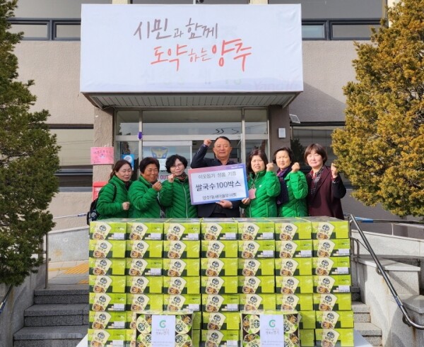 방선희 새마을부녀회장은 기부물품을 전달하며 “양주1동 관내 어려운 이웃들과 같은 소외계층들에게 온정을 나눌 수 있기를 바라며 기부를 했다”며 “앞으로도 함께 나누며 더불어 살아가는 지역공동체 실현을 위해 다양한 나눔활동을 지속적으로 전개해 나가겠다“고 말했다.