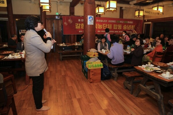 이날 송년회는 신계용 과천시장, 갈현동 지역 내에서 활동하는 주민자치위원회, 통장단, 새마을부녀회, 체육회, 지역사회보장협의체 등 5개 사회단체 회원이 참석했다.
