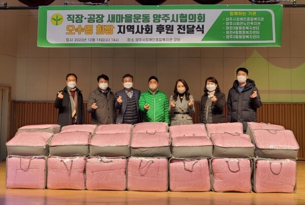 이날 전달식에는 송미애 양주2동장, 김금숙 회천3동장, 이창열 회천4동장, 김정희 장애인종합복지관장, 이상록 회천노인복지관 팀장 등이 참석했다.