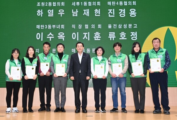 이재준 수원시장은 새마을회 발전에 이바지한 지도자들에게 수원시장 표창을 수여했다.