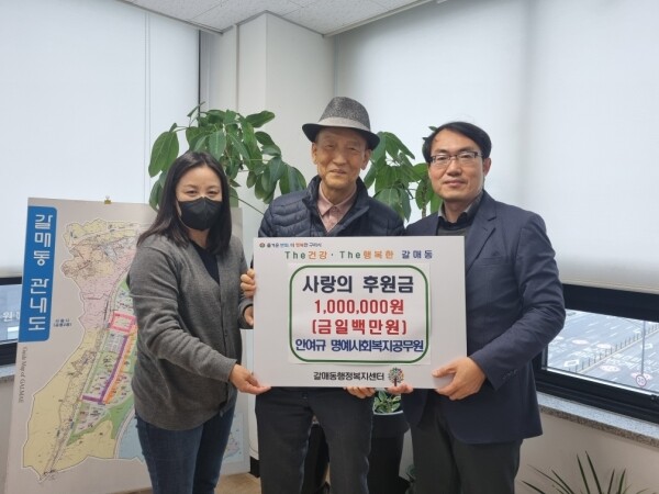 조영훈 갈매동장은 “연말을 앞두고 어려운 이웃을 위해 따뜻한 나눔을 실천해주신 안여규 님께 감사드린다 동에서도 따뜻한 나눔이 끊이지 않도록 어려운 이웃을 위한 나눔과 섬김에 적극 동참하겠다”고 전했다.