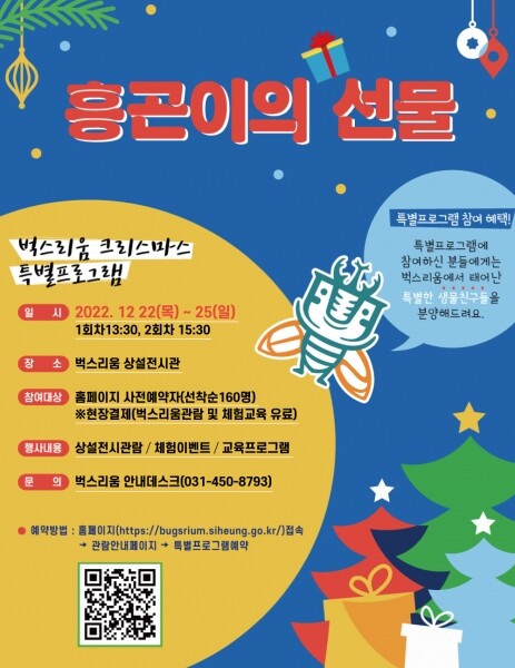 크리스마스 특별프로그램의 참여 신청은 오는 12월 16일 오전 10시부터 벅스리움 누리집을 통해 가능하며 선착순으로 160명을 모집한다.