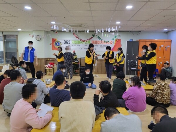 이날 동두천 목련라이온스클럽 회원들은 주간·단기보호센터 장애인들을 위해 재능기부로 흥겨운 국악 공연과 센터 이용인들이 좋아하는 간식을 준비해 다함께 어우러지는 즐거운 시간을 가졌다.