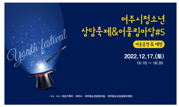 2022년 여주청소년어울림마당 마지막 행사로 마술공연을 감상하고 키트를 제공해 마술을 직접 체험해보는 문화공연으로 진행될 예정이다.