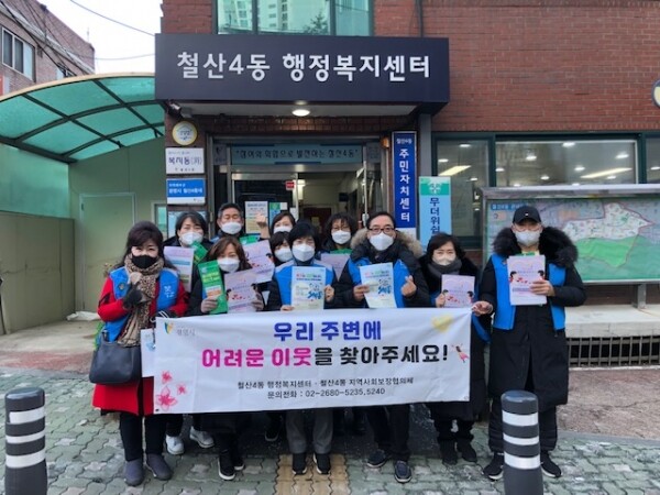 또한, 철산4동 도덕공원로 일대에서 일반 주민을 대상으로 복지서비스 홍보 안내문을 나눠주며 사각지대 발굴을 위한 캠페인을 전개했다.