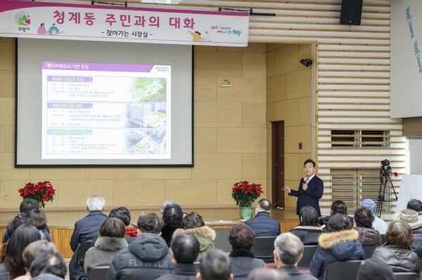 올해 마지막 찾아가는 시장실이 개최된 이날 청계동주민센터에는 100여명의 주민들이 참여해 버스노선 관련 백운밸리 내 신호체계 개선 중학교 신설 반사경 설치 롯데몰 관련 사항 등 다양한 의견을 건의하고 논의했다.