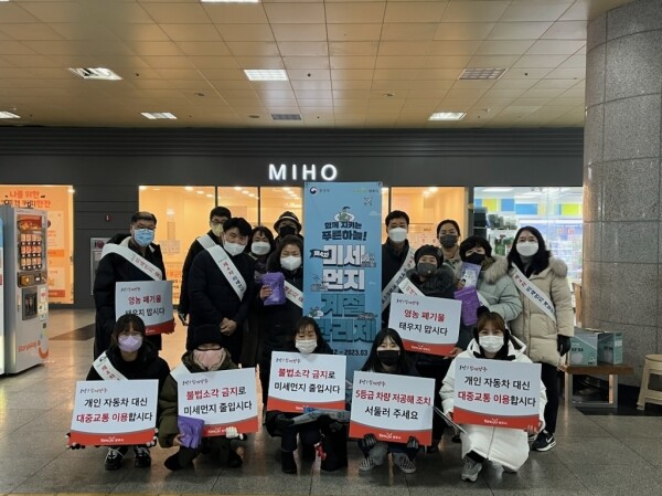 양주시은 15일 덕정역사 내에서 제4차 미세먼지 계절관리제 시행의 일환으로 미세먼지 저감 시민참여단과 함께 홍보 캠페인을 진행했다.