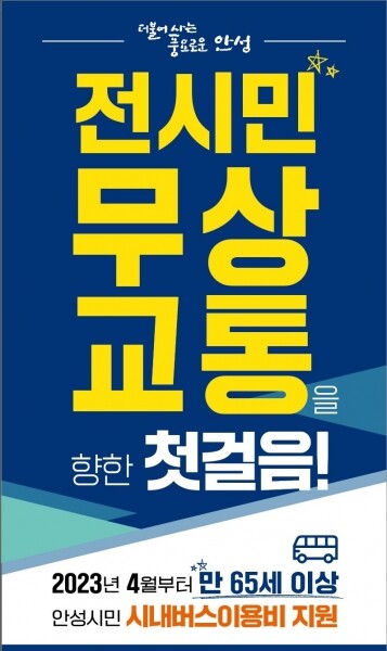 ‘안성시 어르신 무상교통 지원사업’은 어르신의 이동권 보장을 통한 삶의 질 향상과 대중교통의 공공성 증진을 위해 안성시가 추진하는 사업으로 안성시에 주민등록이 되어 있는 만65세 이상의 시민을 대상으로 시내버스 교통비를 지원하는 내용이다.