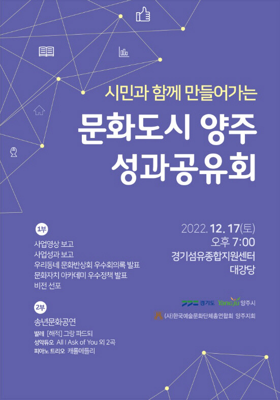 이번 행사는 2022년 경기도 문화자치 활성화 사업에 양주시가 공모 선정된 이후 추진한 양주시 문화자치 활성화사업의 성과를 공유하기 위해 마련됐다.
