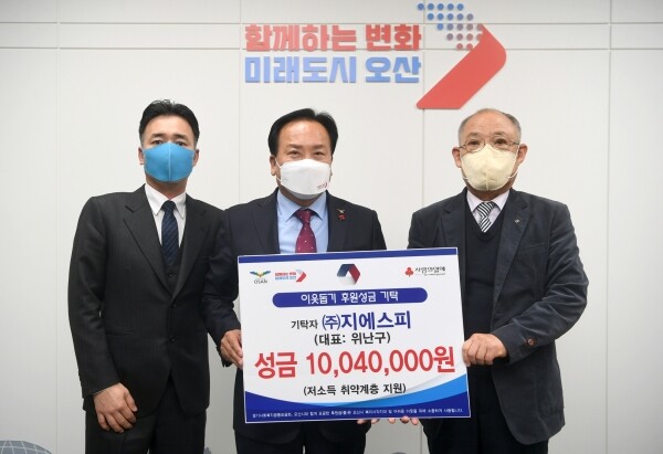 이에 이권재 오산시장은“지에스피에서 전달해주신 의미 있는 성금 덕분에 오산시가 더욱 희망 가득한 지역으로 발돋움할 수 있을 것으로 기대된다”며 “오산시도 복지사각지대 발굴에 더욱 힘써 우리 이웃들이 다가오는 2023년 계묘년도 힘차게 시작할 수 있도록 노력하겠다”고 답했다.
