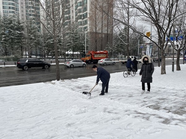 덕양구 직원들이 발 벗고 나서 제설차가 진입할 수 없는 인도나 덕양구 가로수길 주변에 쌓인 눈을 신속히 제거해 시민들이 안전하게 오갈 수 있는 길을 확보했다.