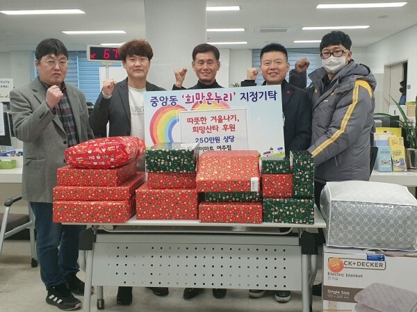 중앙동은 이불, 히터 등 난방 용품을 한파 취약계층 25가구에 바로 전달했다.