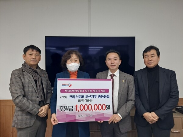 이종근 총동문회 회장은 “관내 학대피해 아동의 보호를 위한 쉼터가 신규로 개소해 다양한 지원이 필요하다는 담당자의 말을 듣고 보호받는 우리 아동들에게 누락되는 권리가 발생하지 않도록 학습용 컴퓨터를 지원하게 됐다”며 “앞으로도 지역사회의 발전을 위해 꾸준히 노력하겠다”고 전했다.
