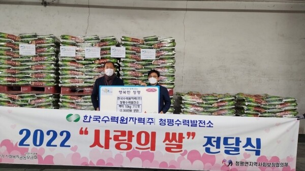 지병록 청평면장은 “어려운 경제요건 속에서도 꾸준히 후원해주시는 한국수력원자력청평수력발전소에 감사하다 꼭 필요한 분들에게 성품이 잘 전달되도록 하겠다 어려운 시기에 도움을 주셔서 감사하다”고 전했다.
