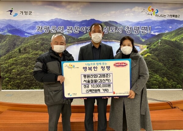 지병록 청평면장은 “요즘처럼 어려운 시기에 따뜻한 온정을 나누어주셔서 감사하다 부부께서 각각의 사업체를 운영하시면서 기탁해주신 성금은 더욱 큰 의미가 있다 귀한 성금은 청평면의 복지사각지대에 있는 분들에게 소중히 사용하겠다”고 말했다.